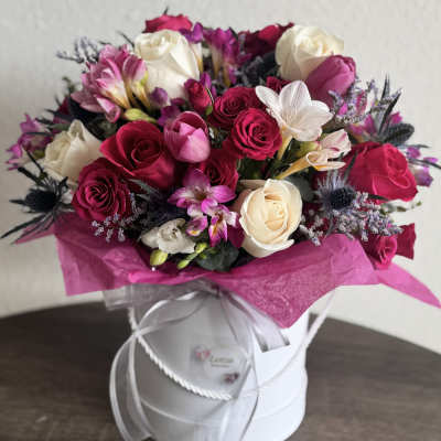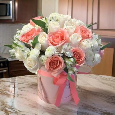 Price: $130.00Luxury Pink & White Rose Hat Box Bouquet